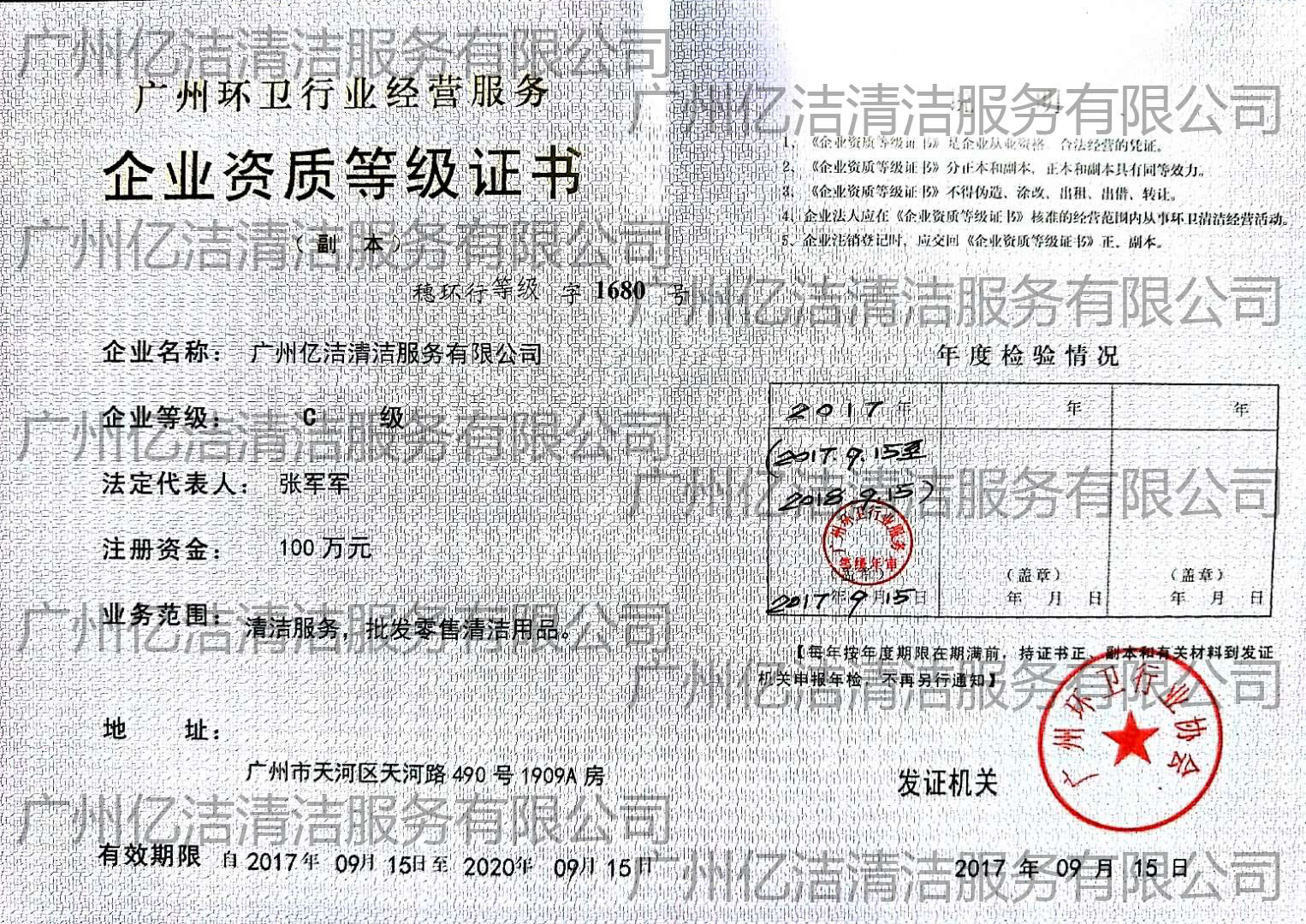 廣州億潔清潔服務(wù)有限公司是經(jīng)廣州市工商行政管理局批準(zhǔn)成立的(注冊(cè)資本:100萬(wàn)元人民幣)。具有獨(dú)立法人資質(zhì)。公司成立2015年,公司具備完善的管理體系和高素質(zhì)管理隊(duì)伍,擁有特種技術(shù)人員33名,保潔服務(wù)人員上萬(wàn)名,覆蓋廣州市,能及時(shí)調(diào)配并快速投入高效運(yùn)行。我們的每個(gè)員工都經(jīng)過(guò)公司的嚴(yán)格篩選,嚴(yán)格培訓(xùn),定期培訓(xùn)后持證上崗以保證服務(wù)品質(zhì),保障客戶的權(quán)利,利益,形象等不受損失。 廣州億潔清潔公司是一家設(shè)備齊全,技術(shù)強(qiáng)大的綜合型清潔服務(wù)公司,為客戶提供完善服務(wù)尊定了堅(jiān)定的基礎(chǔ)。 司于2010年全面推行了ISO9001質(zhì)量管理體系認(rèn)證和ISO14001國(guó)際環(huán)保體系認(rèn)證。先后獲得廣州高層建筑外墻清洗維修作業(yè)【安全資質(zhì)證書(shū)】、【廣州環(huán)衛(wèi)企業(yè)等級(jí)證書(shū)C級(jí)資質(zhì)】、廣州疾控中心頒發(fā)的【四害消殺服務(wù)資質(zhì)證】、【空氣治理A級(jí)資質(zhì)】、中國(guó)石材協(xié)會(huì)頒發(fā)的【石材資質(zhì)B級(jí)資質(zhì)】等。 廣州億潔清潔服務(wù)有限公司致力于打造專業(yè)、實(shí)惠、靠譜的保潔服務(wù)公司,把專業(yè)的事情交給專業(yè)的我們,您放心! 億潔清潔服務(wù)項(xiàng)目: 廣州保潔服務(wù):新建樓宇、別墅、酒店、醫(yī)院、辦公樓、賓館、企事業(yè)單位廠房竣工后開(kāi)荒及裝修后精細(xì)保潔.工程保潔服務(wù)。 廣州物業(yè)托管:為廣州市各大企事業(yè)單位、賓館、政府機(jī)關(guān)、小區(qū)物業(yè)、酒店及廠房提供專業(yè)化保潔、園林、設(shè)施維護(hù)等管理服務(wù)。 廣州高空作業(yè):高空玻璃幕...[詳情]